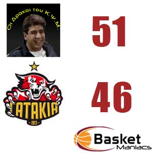 Ένα δεκάλεπτο ήταν αρκετό για τους ΔΡΑΚΟΙ ΤΟΥ Κ.Ψ.Μ. προκειμένου να επικρατήσουν έναντι στα GATAKIA BC. Η διαφορά των 10 πόντων την οποία αποκόμισαν από το συγκεκριμένο πρώτο δεκάλεπτο στάθηκε μαξιλαράκι ασφαλείας απέναντι στον Cramer και την ομάδα του. Ένας Cramer που ναι μεν ήταν κακός σε ποσοστά αλλά και πάλι κατάφερε να αγχώσει σε πολλά σημεία του παιχνιδιού τους νικητές ειδικά στο τελευταίο δεκάλεπτο όπου η διαφορά έφτασε μέχρι τους πέντε πόντους. Εν τέλει οι ΔΡΑΚΟΙ ΤΟΥ Κ.Ψ.Μ. πήραν το ροζ φύλλο αγώνα σε ένα πάρα πολύ όμορφο παιχνίδι.